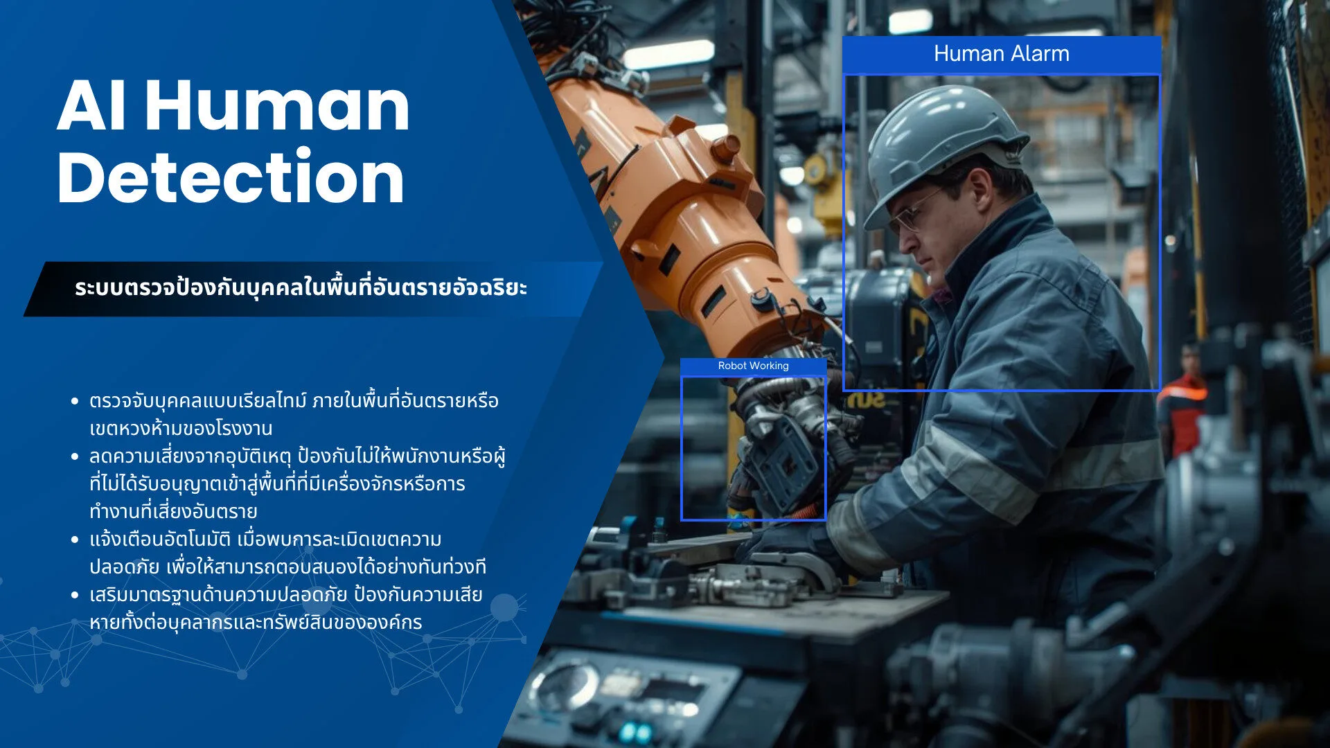 AI Human Detection: ตรวจจับการเคลื่อนไหวและตำแหน่งของบุคคลภายในโรงงาน ด้วยกล้อง AI และระบบ Indoor Positioning ป้องกันการเข้าพื้นที่อันตราย ลดความเสี่ยงอุบัติเหตุ และติดตามความปลอดภัยของพนักงานได้แบบเรียลไทม์
