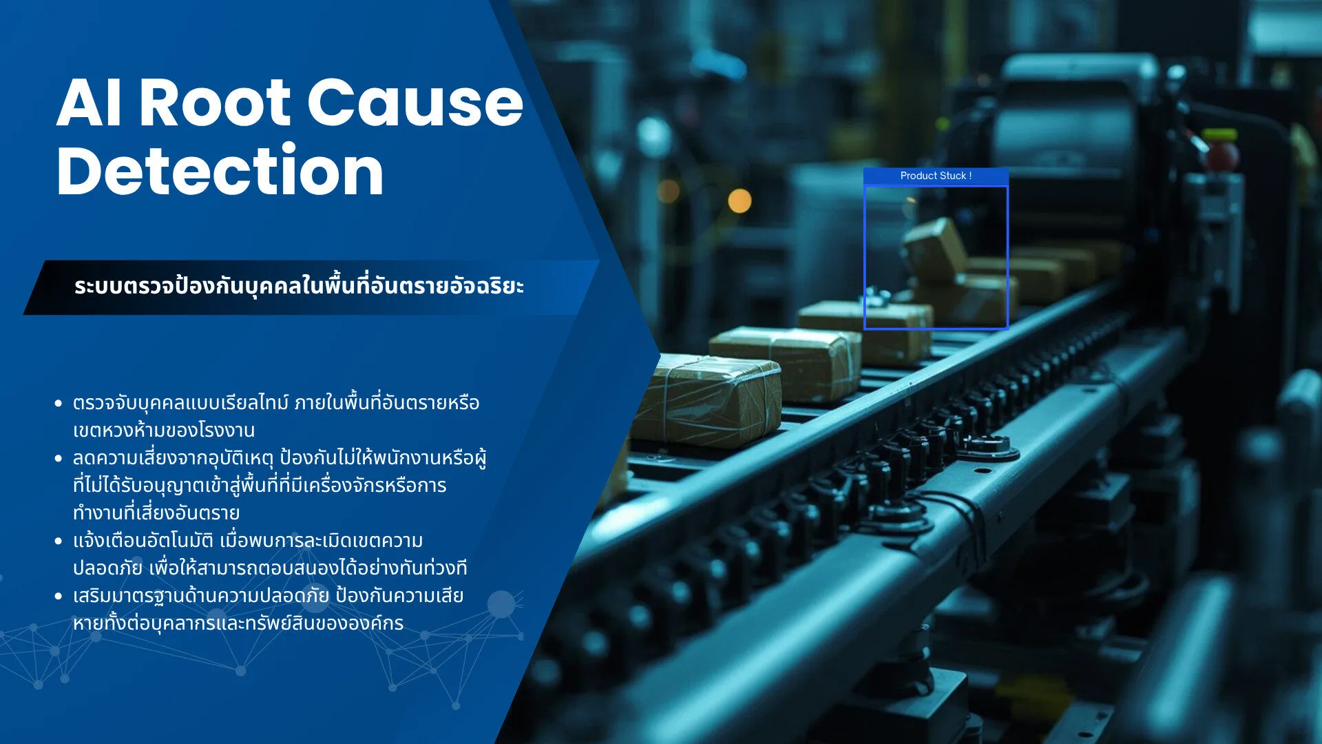 ยกระดับความปลอดภัยและประสิทธิภาพการผลิต ด้วยโซลูชัน AI อัจฉริยะ ตรวจจับ วิเคราะห์ และควบคุมกระบวนการแบบเรียลไทม์ ลดความเสี่ยง เพิ่มความแม่นยำ และช่วยให้การตัดสินใจรวดเร็วขึ้น